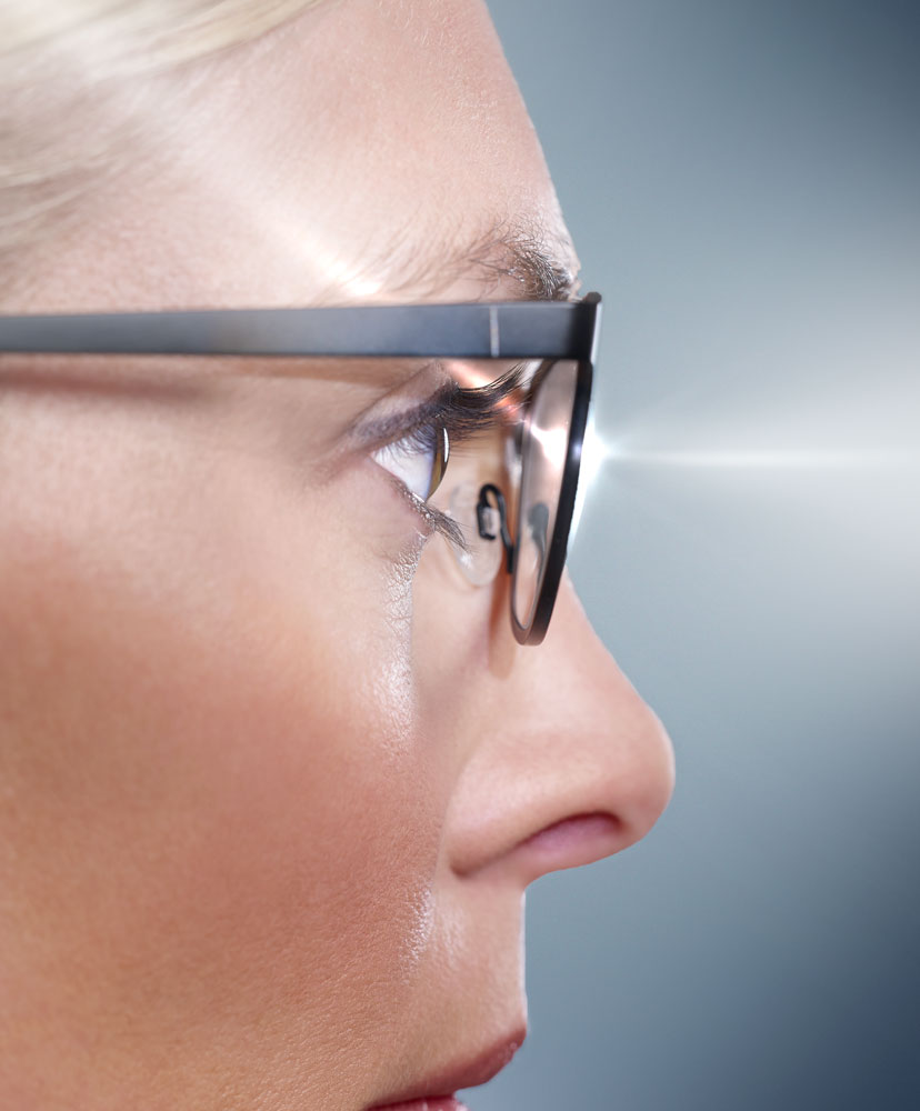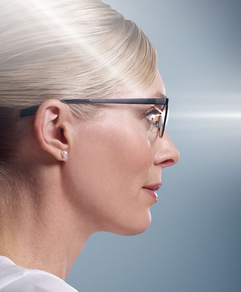 To create a couple of images to demonstrate the non reflective surface of the inside of the lens. Firstly I needed to show light flowing from behind the head into the inner side of the lens and reflecting back into the eye. The second image was to indicate the new lens where this inner reflection did not occur.
